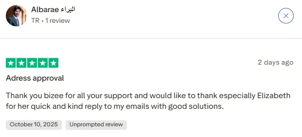 إذا لم يتم تجهيز شركتك وتسليم جميع الوثائق خلال 12 يومًا من تأكيد الدفع، فستسترجع كامل المبلغ فورًا بدون أي خصومات.