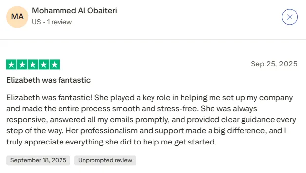 هدفنا هو أن تكون مطمئنًا تمامًا وأنت تبدأ رحلتك نحو بناء شركتك الأمريكية بكل ثقة.